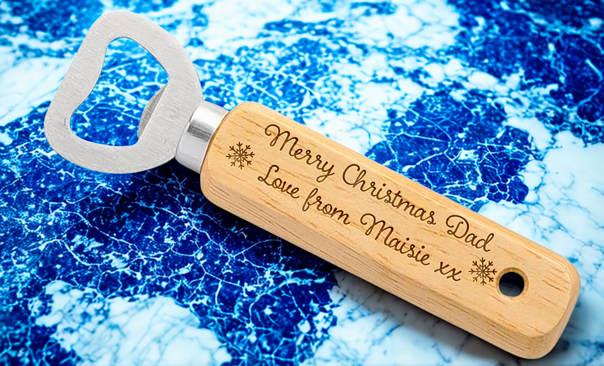 Your custom message is engraved directly into the wood for a clean, long-lasting finish. Whether it’s a heartfelt note, a name, a special date or a funny quote, this personalised touch makes every opener truly unique.